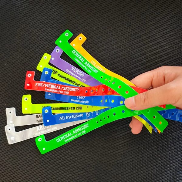 Products Name Plastic Wristband Material Polyethylene (PE), Polyvinyl chloride (PVC), Polypropylene (PP) Size Width: 12mm, 19mm, 25mm. Length: 250mm, 300mm Thickness 0.15mm – 0.25mm Customization Logo, text, serial numbering, barcoding Closure Snap closure, self-adhesive closure Printing Screen printing, thermal printing, embossing Color Solid colors, translucent, neon, metallic Payment term T/T, L/C. Features Durable, waterproof, safe,…